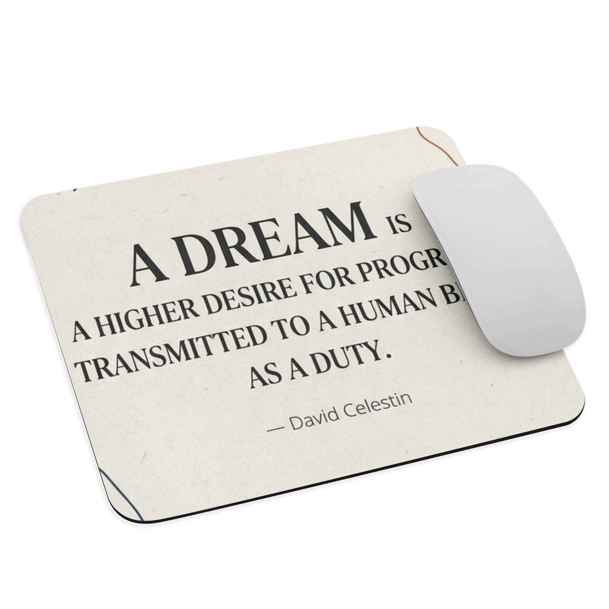 A dream is a higher desire for progress… Mouse pad with inspirational quote. You need a good mouse pad and our mouse pad offers supreme grip and effortless mouse movement, and it does so with style.