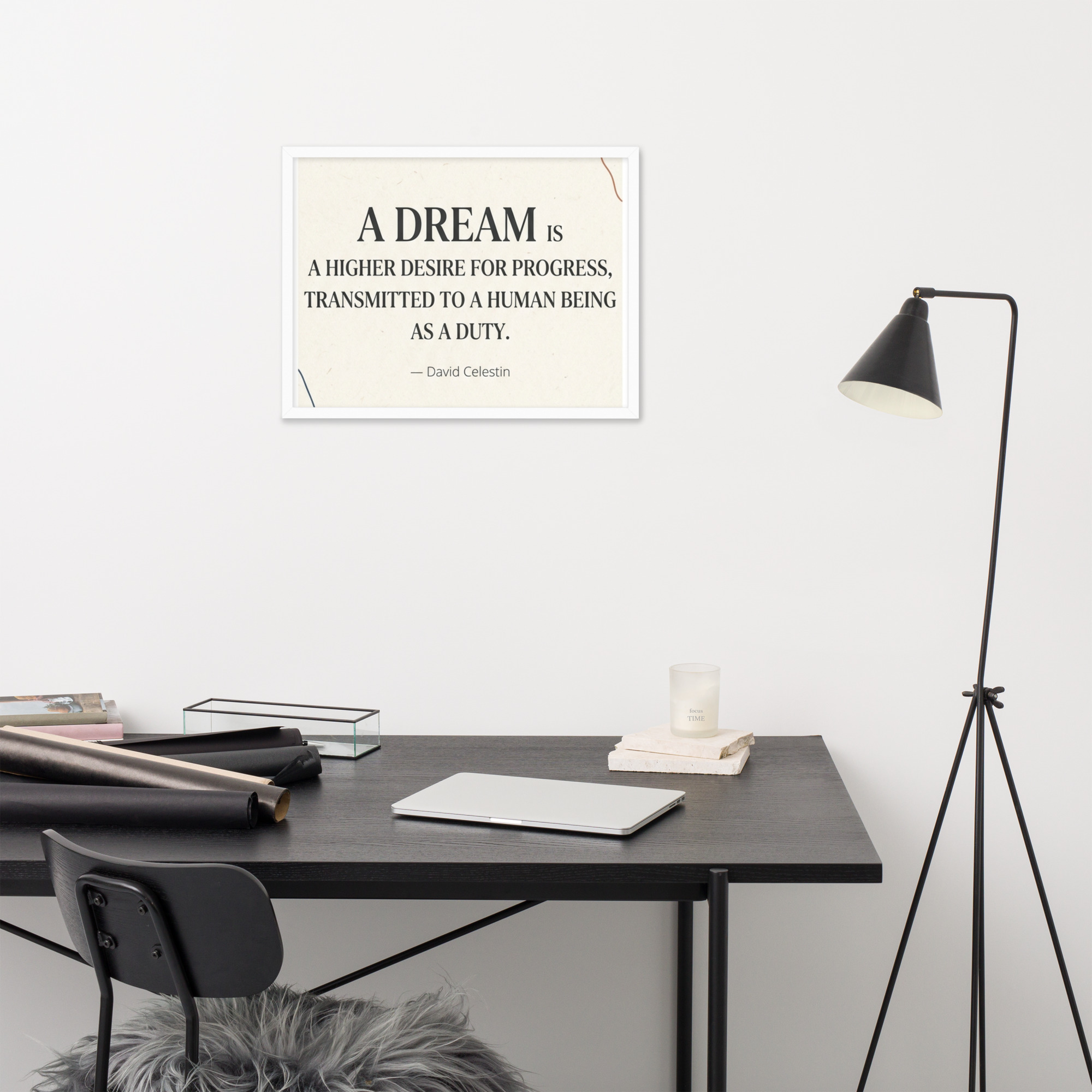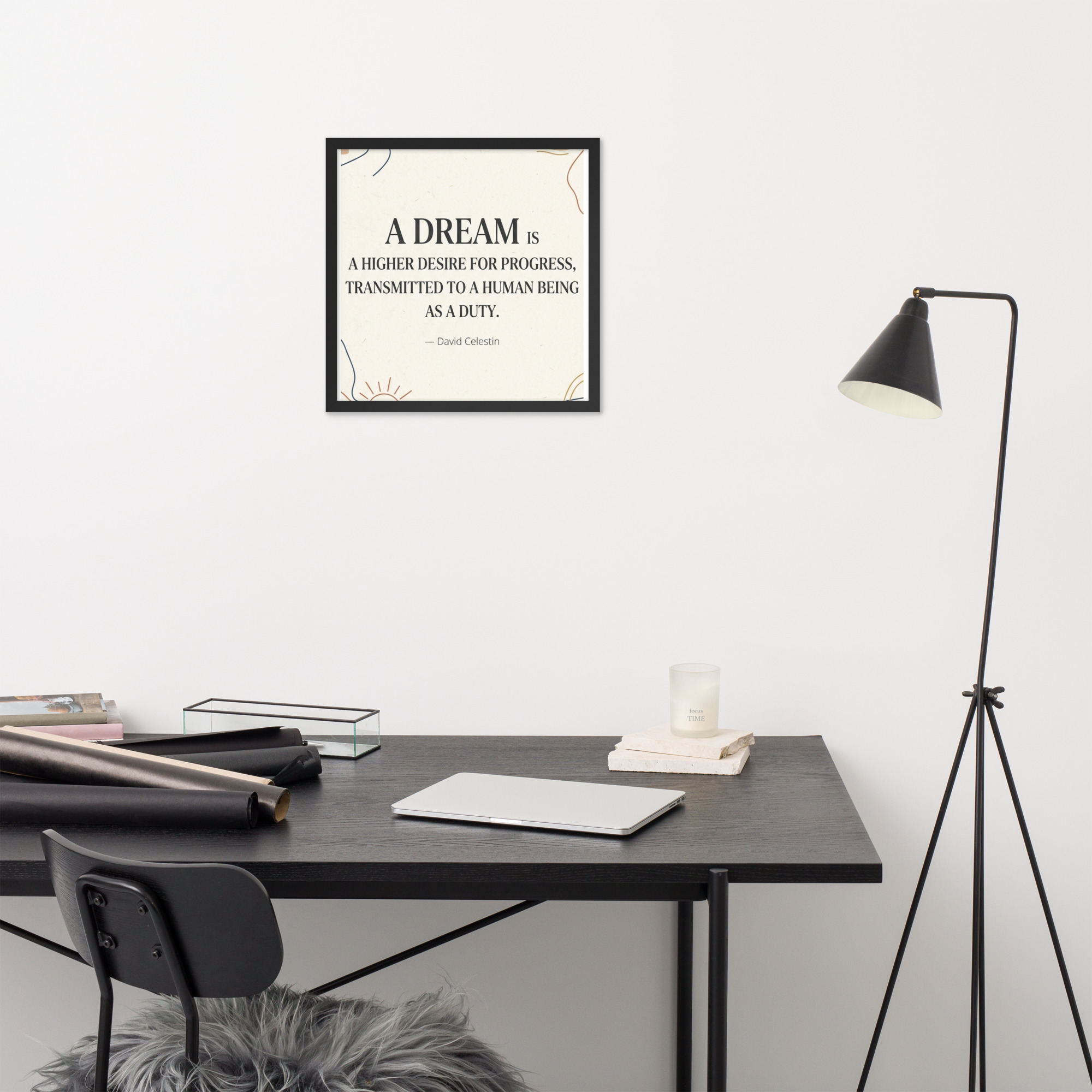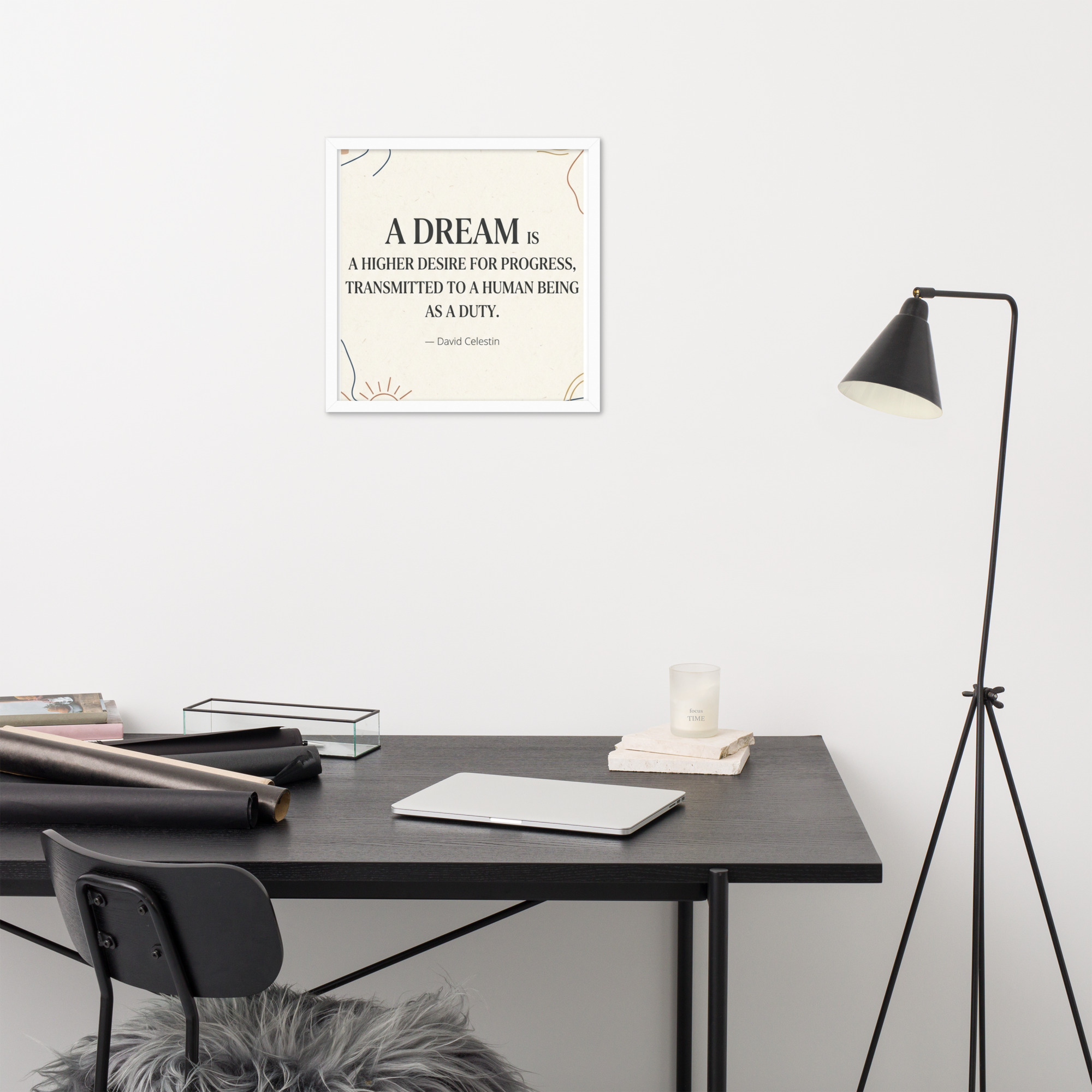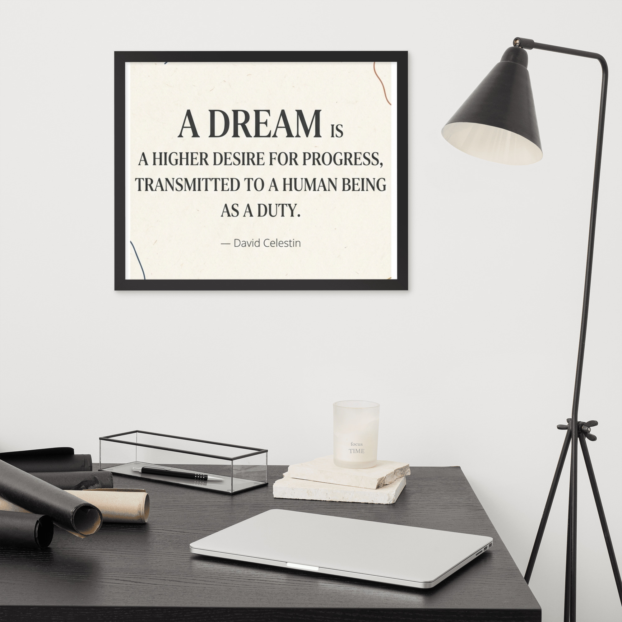 Specification: Framed poster with inspirational quote “A dream is a higher desire for progress…”