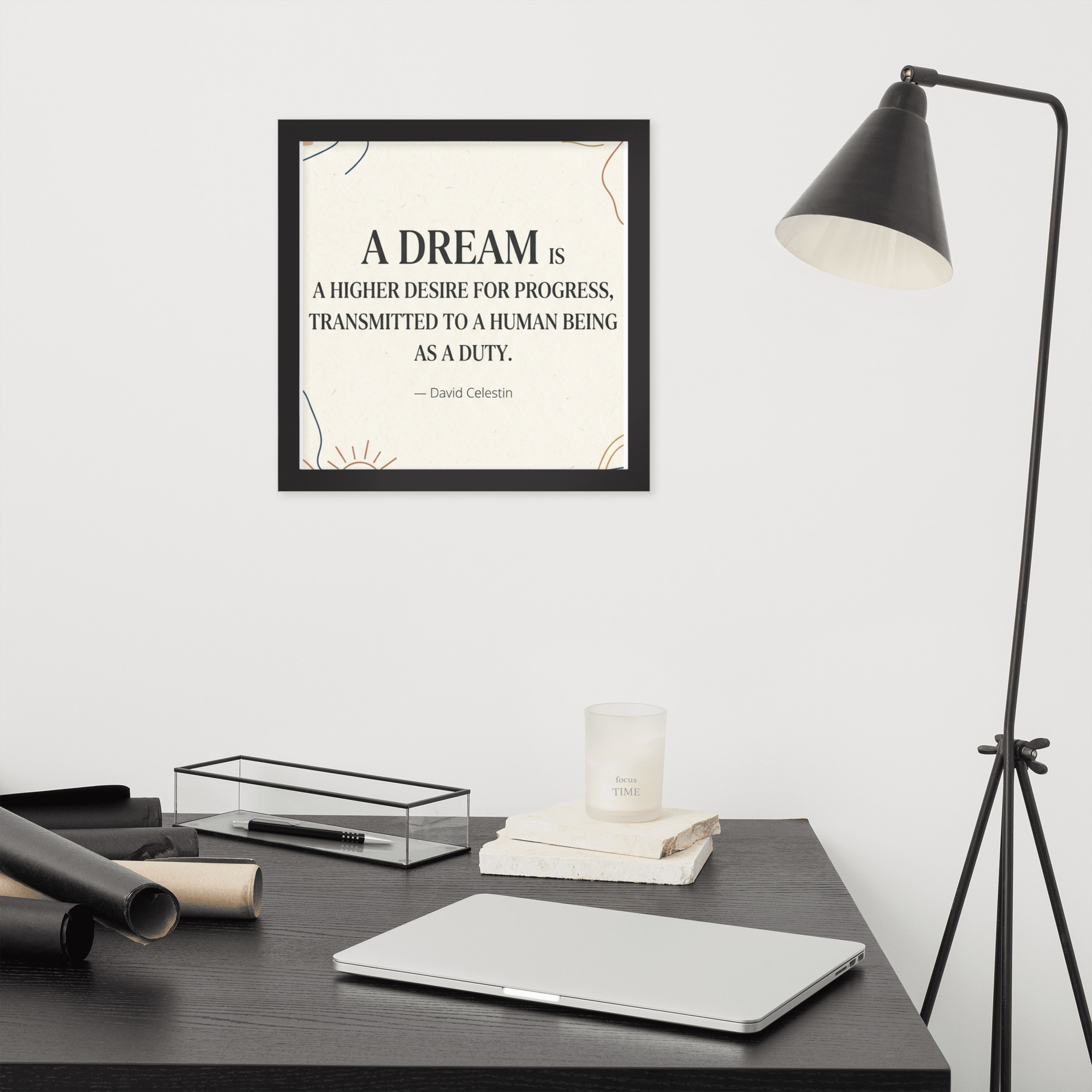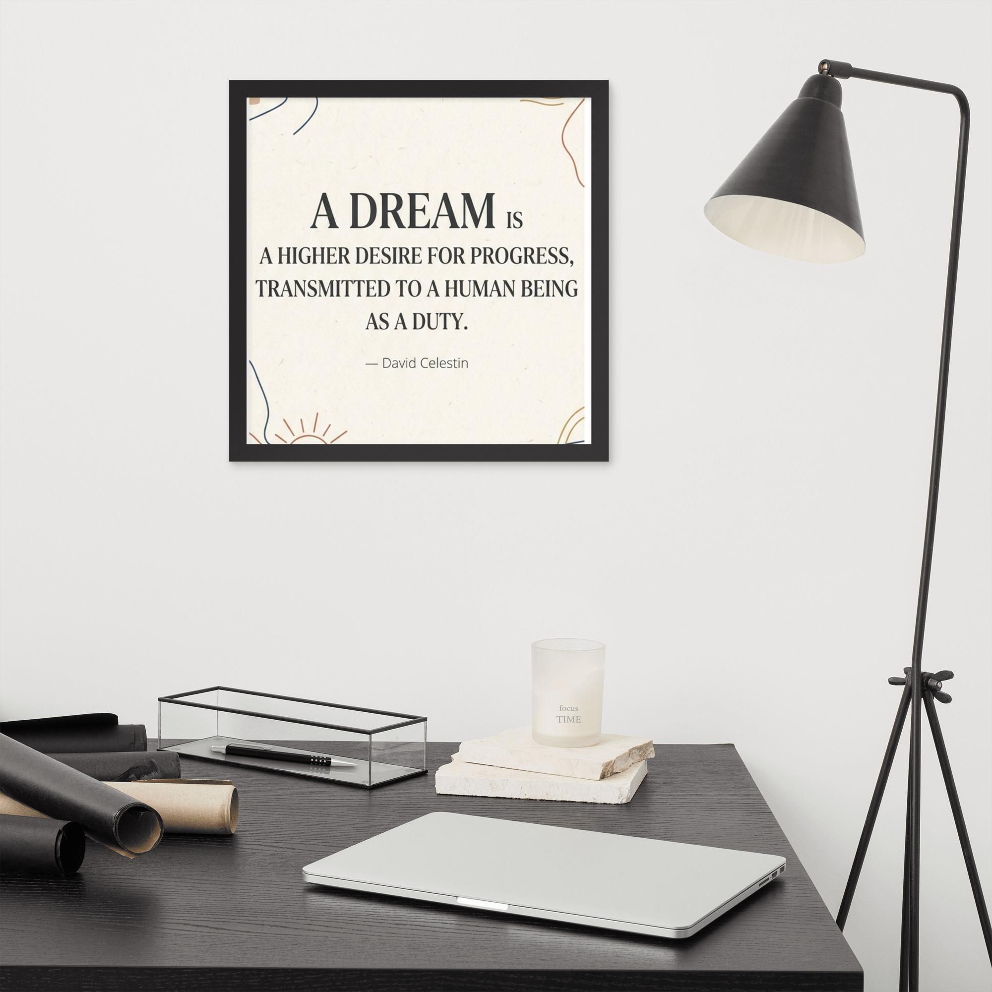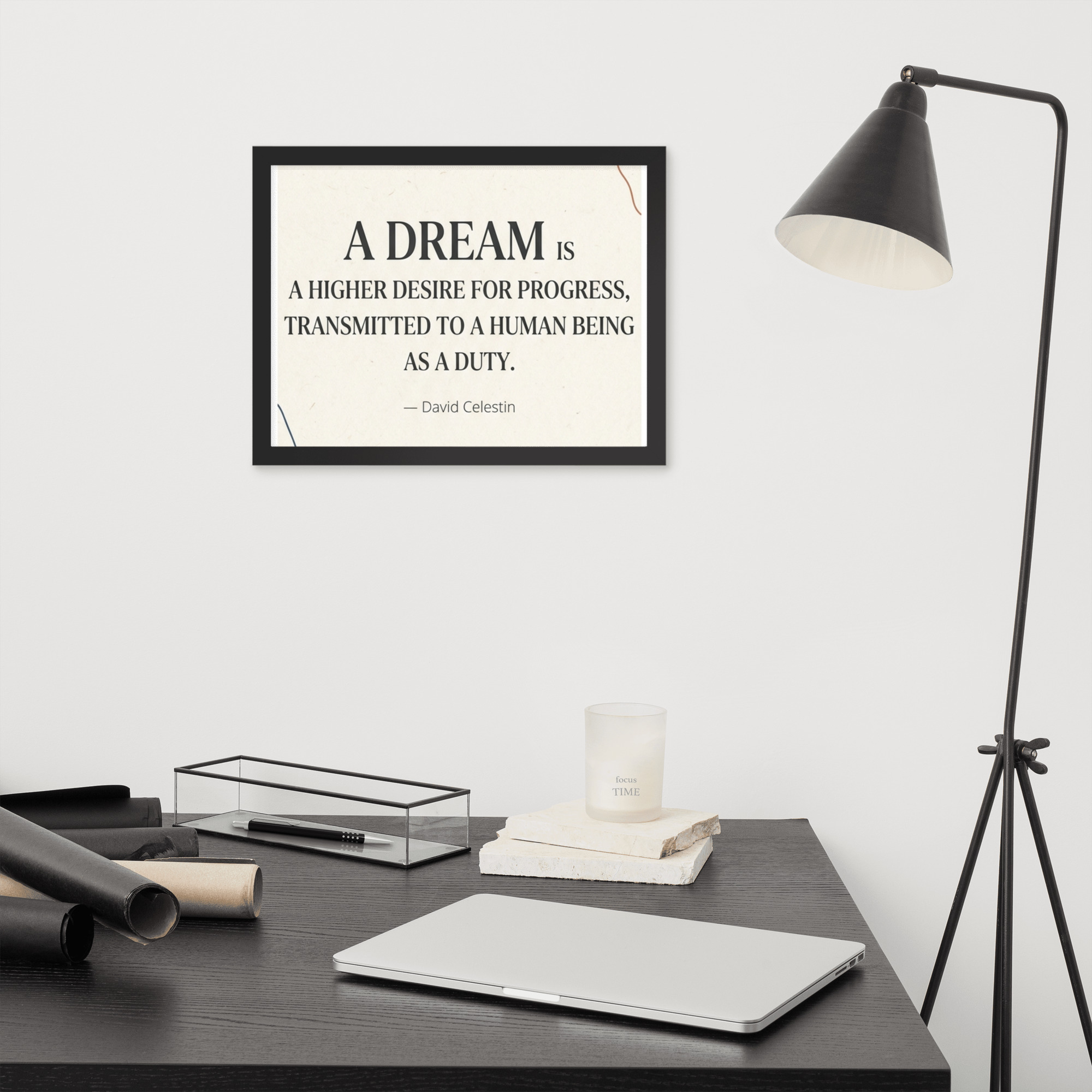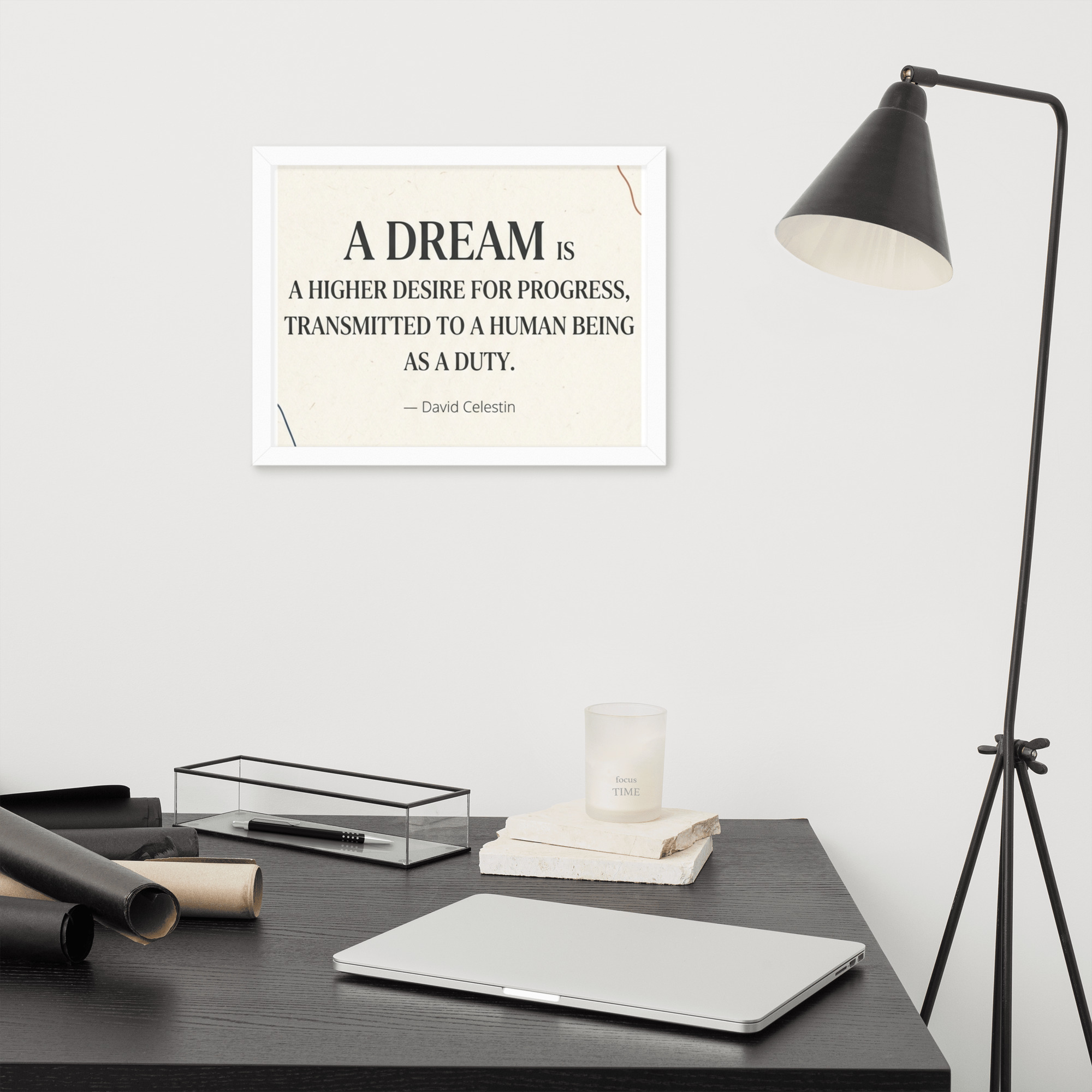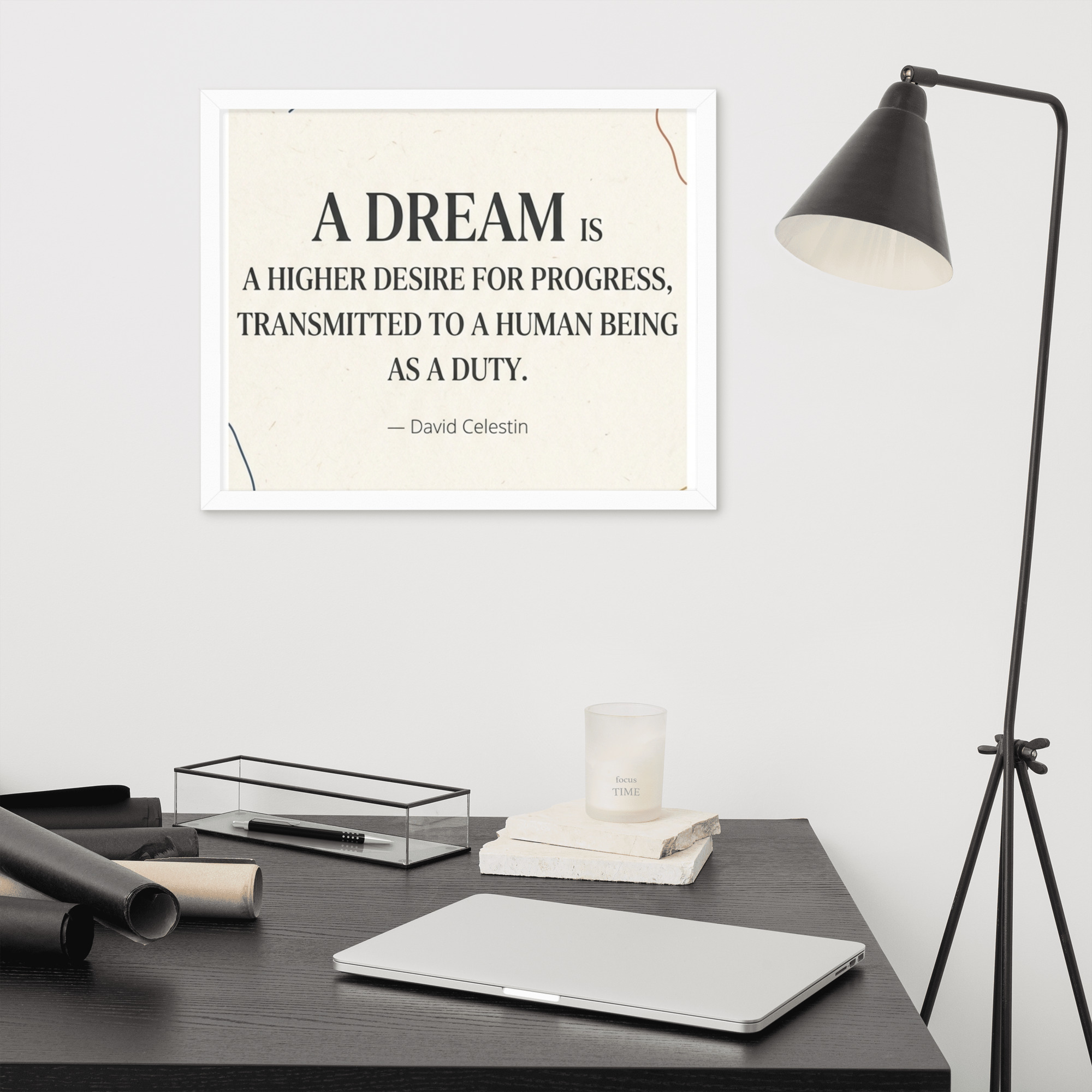 Specification: Framed poster with inspirational quote “A dream is a higher desire for progress…”