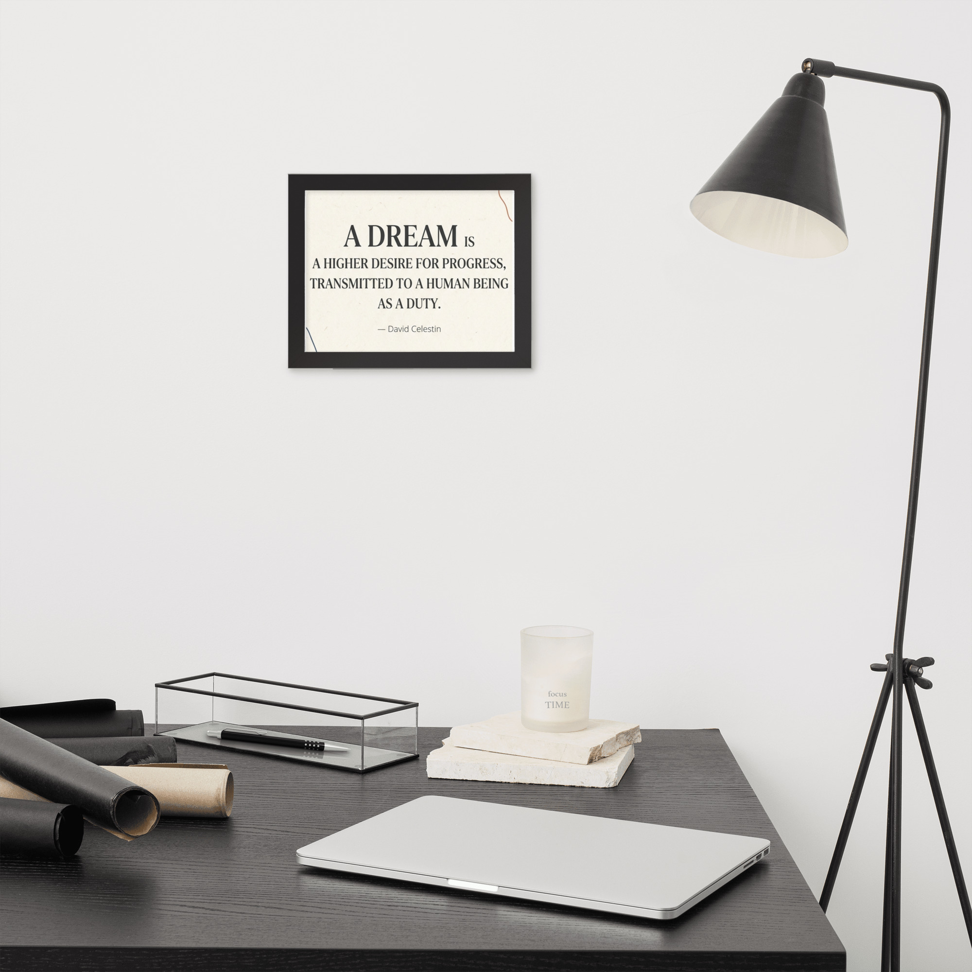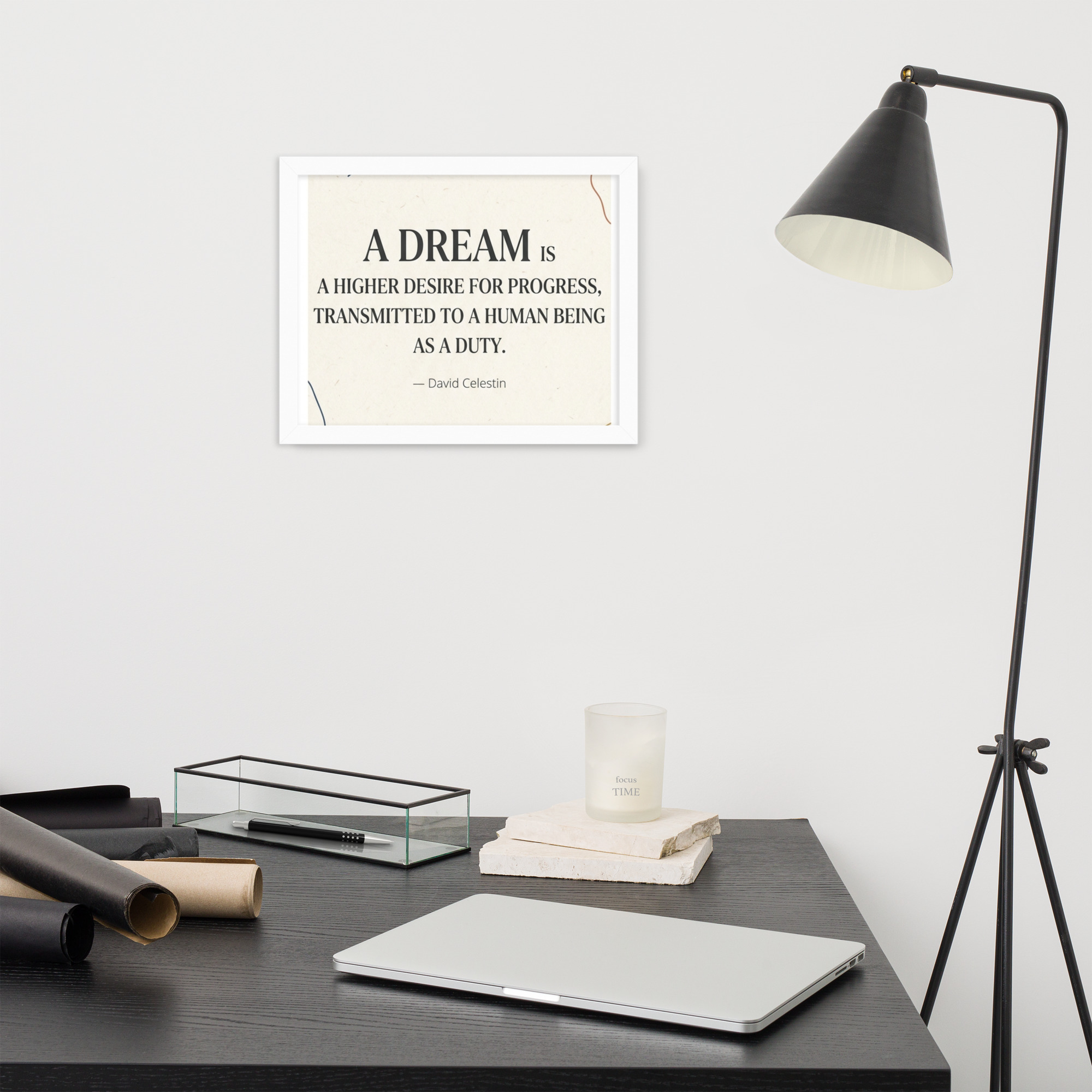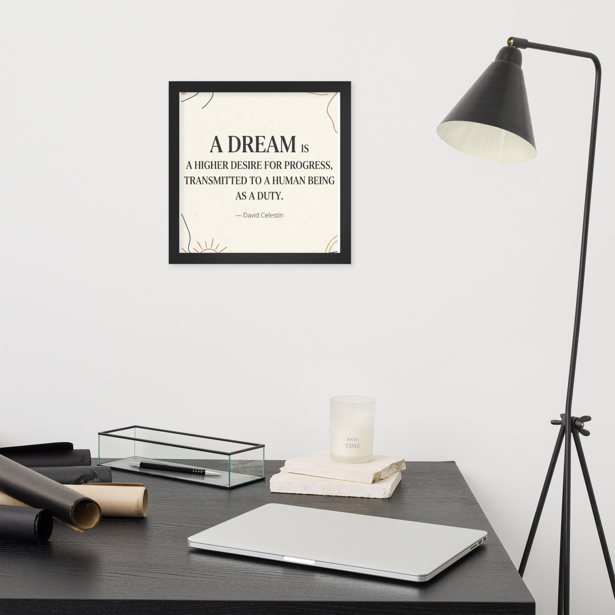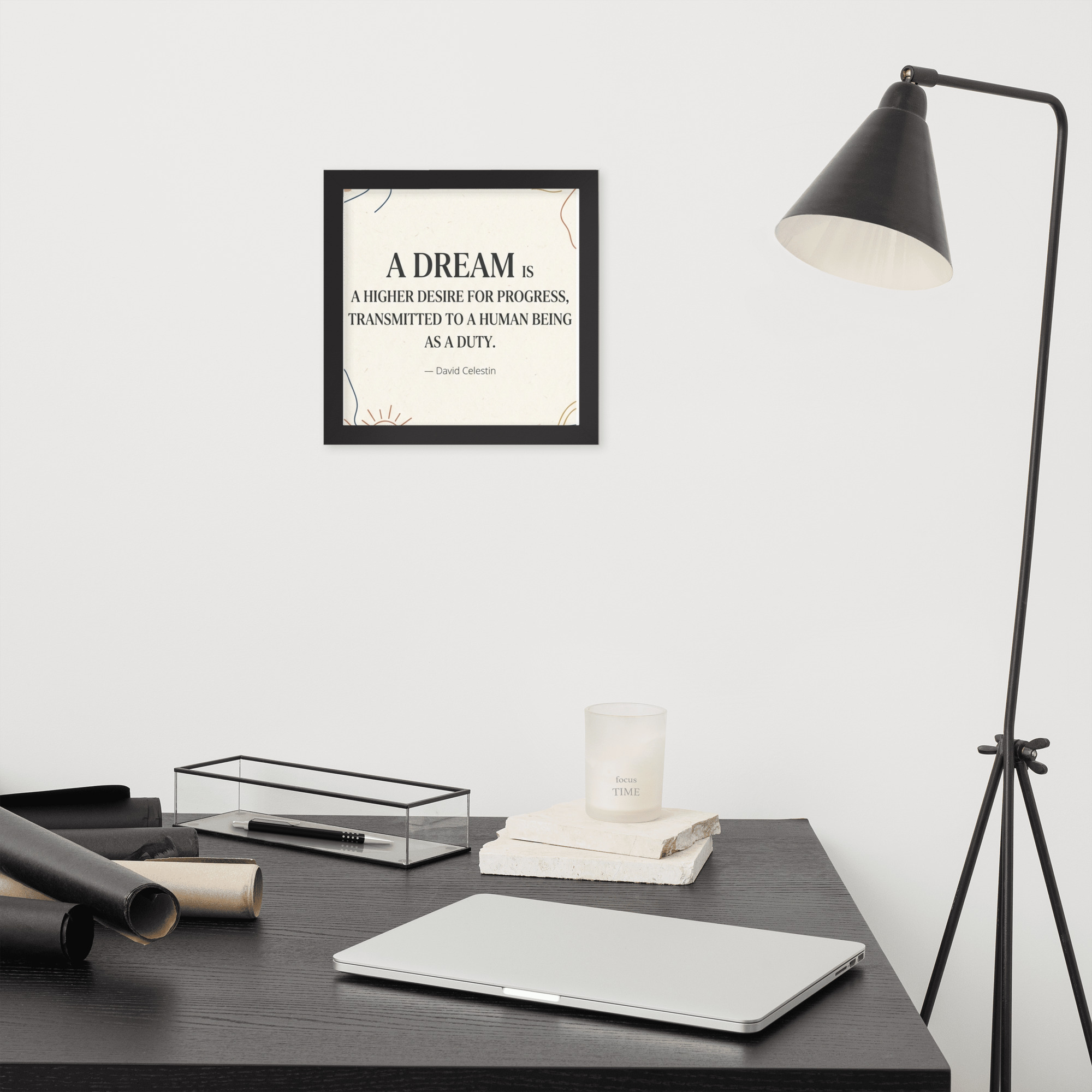Specification: Framed poster with inspirational quote “A dream is a higher desire for progress…”